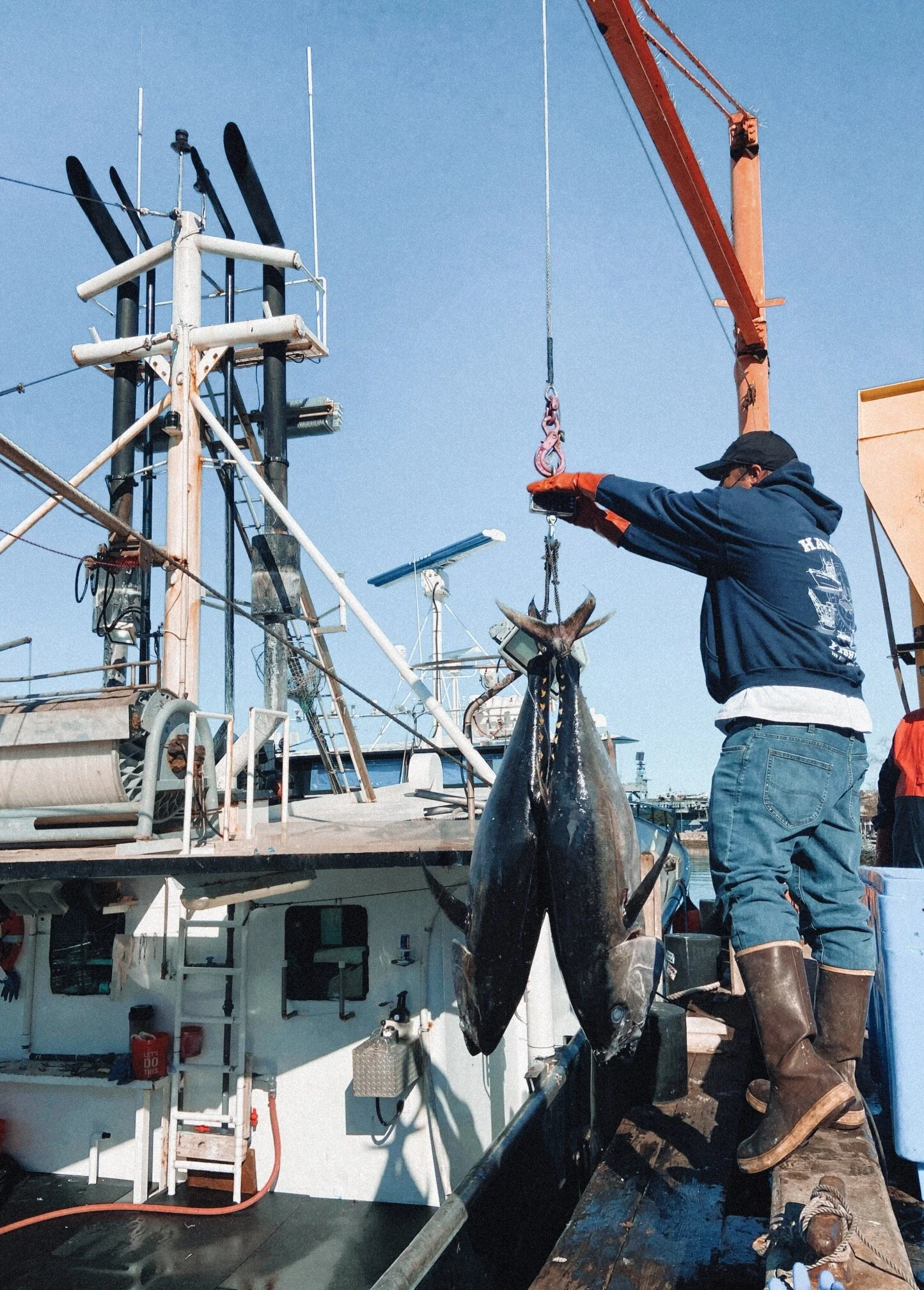 Big eye tuna being offloaded from the F/V Gutsy Lady 4 by Carlos Stivalet. Image courtesy of Jordyn Kastlunger.