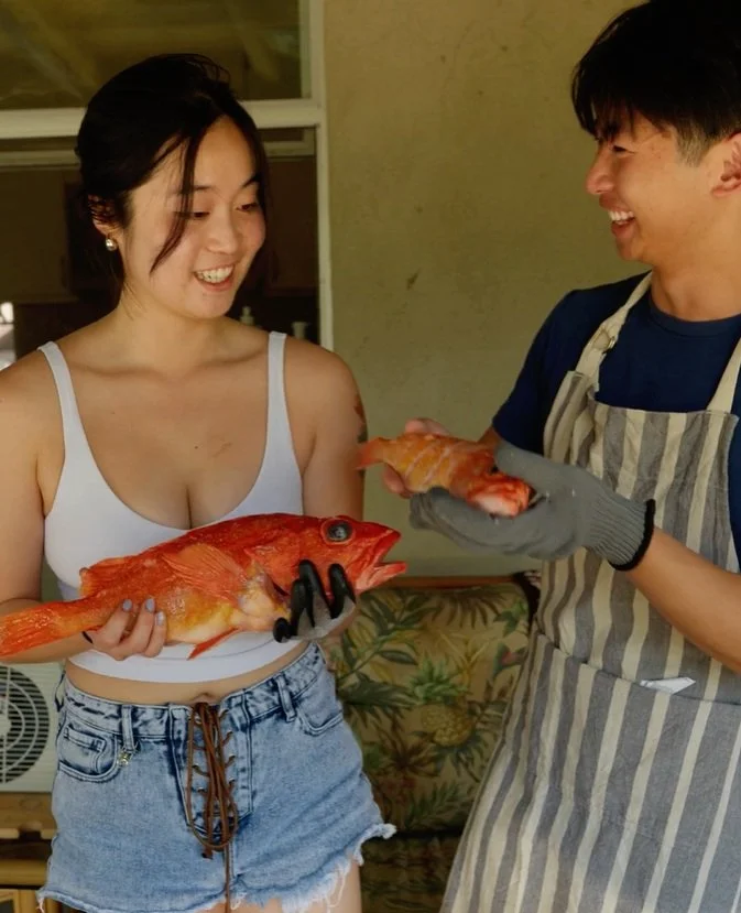 Posing with a Starry Rockfish that I go on to gill, gut, and scale - making it ready-to-cook for whole fish recipes similar to what I had growing up.