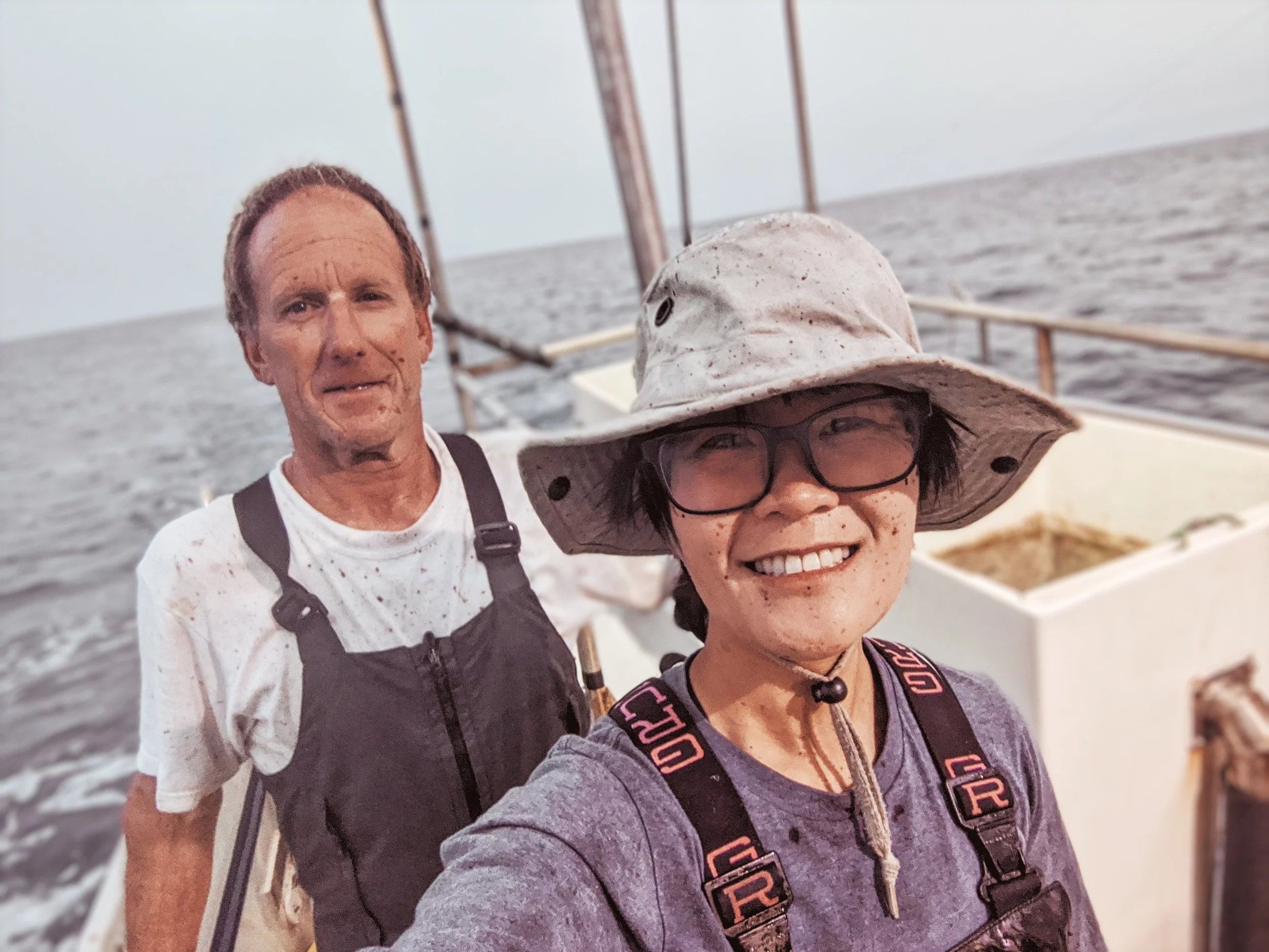 Janelle Louie and Captain Doug on the F/V Olinka.