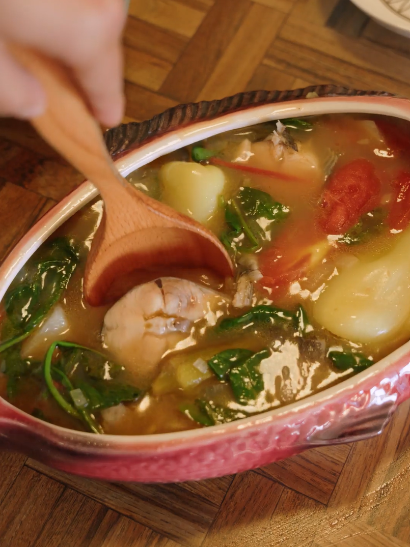 “Sinigang, a sour, veggie-laden broth often paired with rich protein. One of the most comforting dishes from my childhood.”